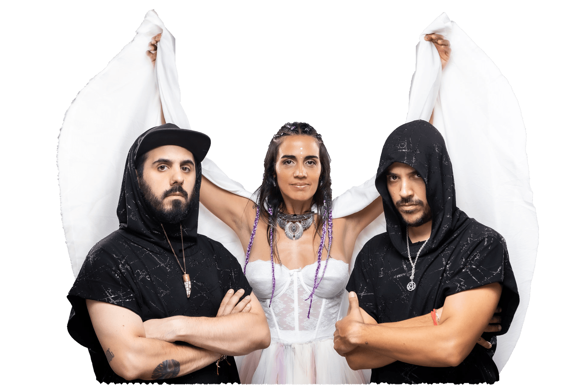 Junto a **Zico Legal** (bajo) y **Ramiro Scavuzzo** (batería), su música se convierte en una experiencia catártica, donde distorsiones potentes y mensajes alquímicos chocan para dejar una impronta transformadora.